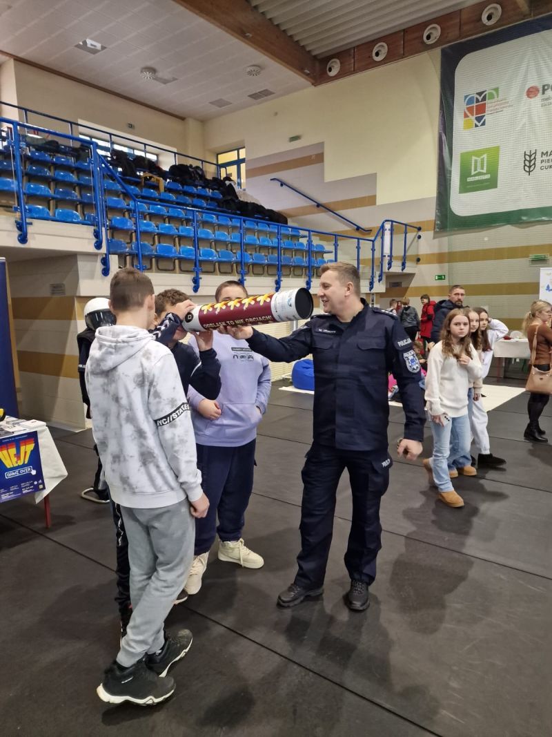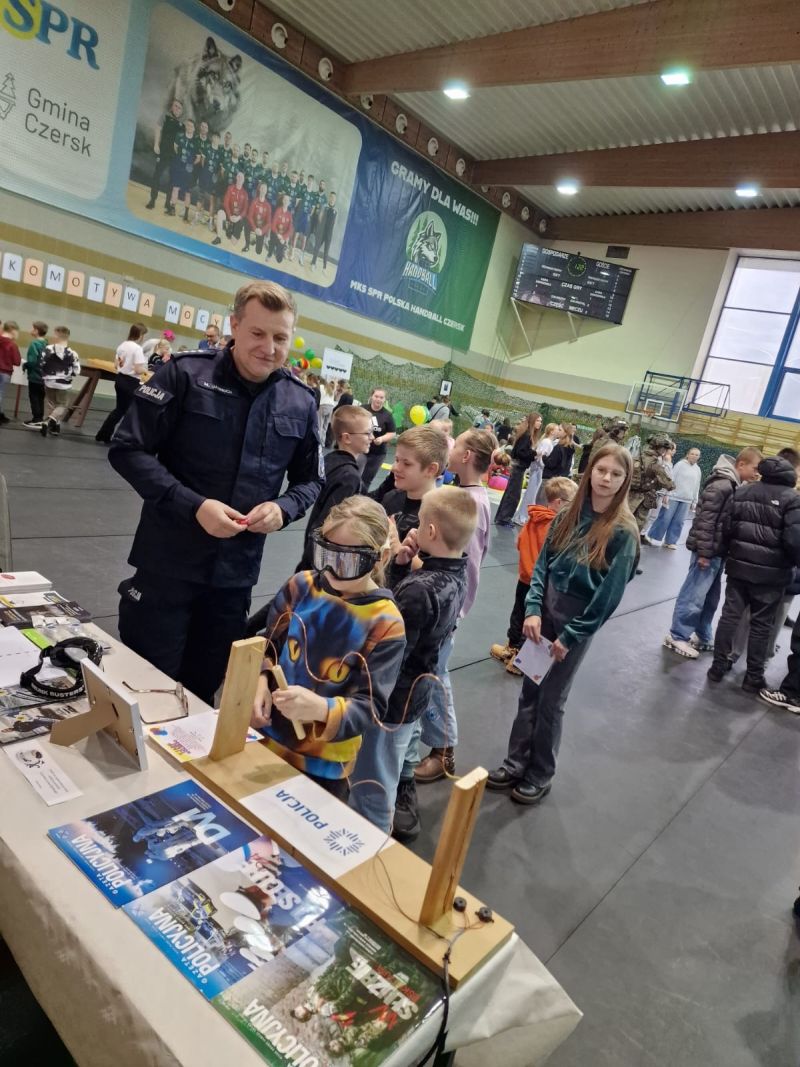 Funkcjonariusze z Komisariatu Policji w Czersku wzięli udział w Targach Czasu Wolnego, które w tym roku zgromadziły przede wszystkim młodzież zainteresowaną różnymi formami aktywności oraz możliwościami rozwoju. Podczas wydarzenia policjanci opowiadali o swojej codziennej pracy, zadaniach, wyzwaniach i szkoleniu, jakie przechodzą funkcjonariusze. Uczniowie mogli z bliska zobaczyć wyposażenie, zapytać o szczegóły dotyczące rekrutacji oraz dowiedzieć się, jakie predyspozycje są ważne w tej profesji. Spotkanie miało na celu przybliżenie młodym ludziom zawodu policjanta i pokazanie, że to służba wymagająca odpowiedzialności, ale też dająca wiele satysfakcji.